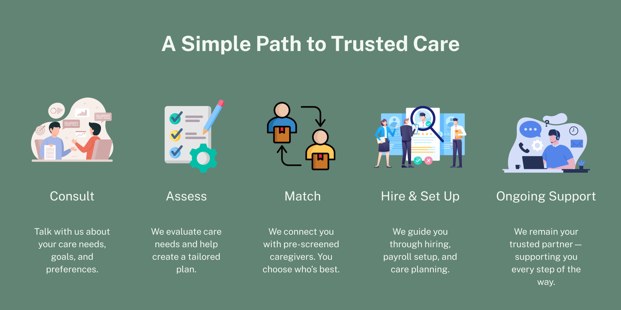 We support you — not replace you — in hiring your own caregiver.
